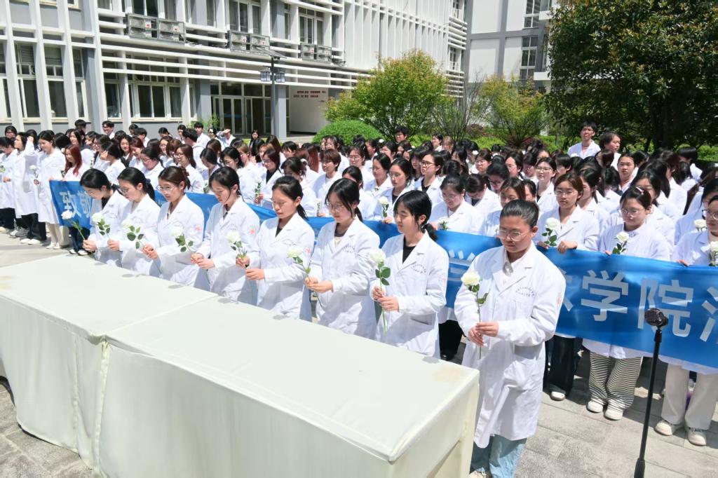 “他们是医学路上最特殊的老师,教会我们敬畏生命、尊重生命。”4月1日,在该校人体生命科学馆前,一列列身着白大褂的学子肃立默哀,深深鞠躬,将手中的白菊轻轻放下。而他们面前的,是医学界最特殊的“老师”——遗体捐献者,被尊称为“无语良师”的人。没有宏大的仪式,只有一束束鲜花、一句句誓言和一次次凝望。活动现场,师生们重温铮铮誓言,一名学生动情地表示:“他们用身躯为我们铺就通往医学殿堂的道路,我们唯有刻苦学习、精进技艺,方能不负这份沉甸甸的托付。”作为浙江省科普教育基地,该校人体生命科学馆平日里是教学科普场所,清明节更是追思与对话的空间。师生们在这里完成的,是一场关乎生命与责任的无声对话。