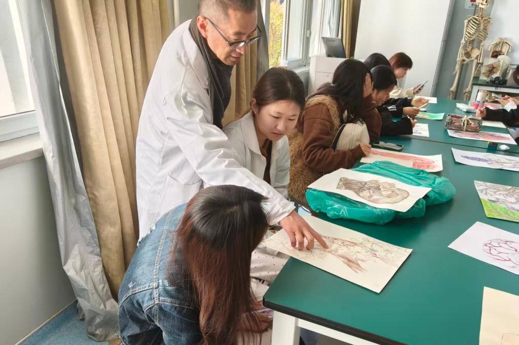 在学校美育教育教学研究中心,另一群学生正用画笔描绘“生命之美”。心脏的肌理、骨骼的架构、神经的走向……解剖学绘图比赛现场,一幅幅人体结构图跃然纸上。参赛学生来自该校护理、口腔医学、医学美容等专业学生。“绘制心脏时,我仿佛能感受到它的跳动。”一位参赛学生指着自己的作品说,“这让我更加理解生命的精妙,也更加珍惜健康的意义。”一幅幅优秀作品,既是严谨的医学图谱,也是富有生命力的艺术作品。“技术可以习得,而对生命的敬畏、对仁爱初心的坚守,需要在一次次感悟中内化于心”。该校人体生命科学馆相关负责人感慨道。