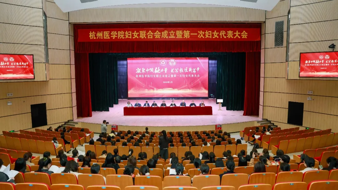 1月16日,杭州医学院妇女联合会成立暨第一次妇女代表大会在临安校区胜利召开!省妇联党组成员、副主席陈晔到会祝贺,校党委书记孙黎明出席大会并讲话。校领导,全校妇女代表与特邀代表、列席代表共170余名共同见证学校妇女事业迈入崭新阶段。大会选举产生了15名杭州医学院妇女联合会第一届执行委员会委员。第一届执委会第一次会议选举产生了妇联主席1名、副主席2名。新当选的妇联主席董雨琴作了表态发言。